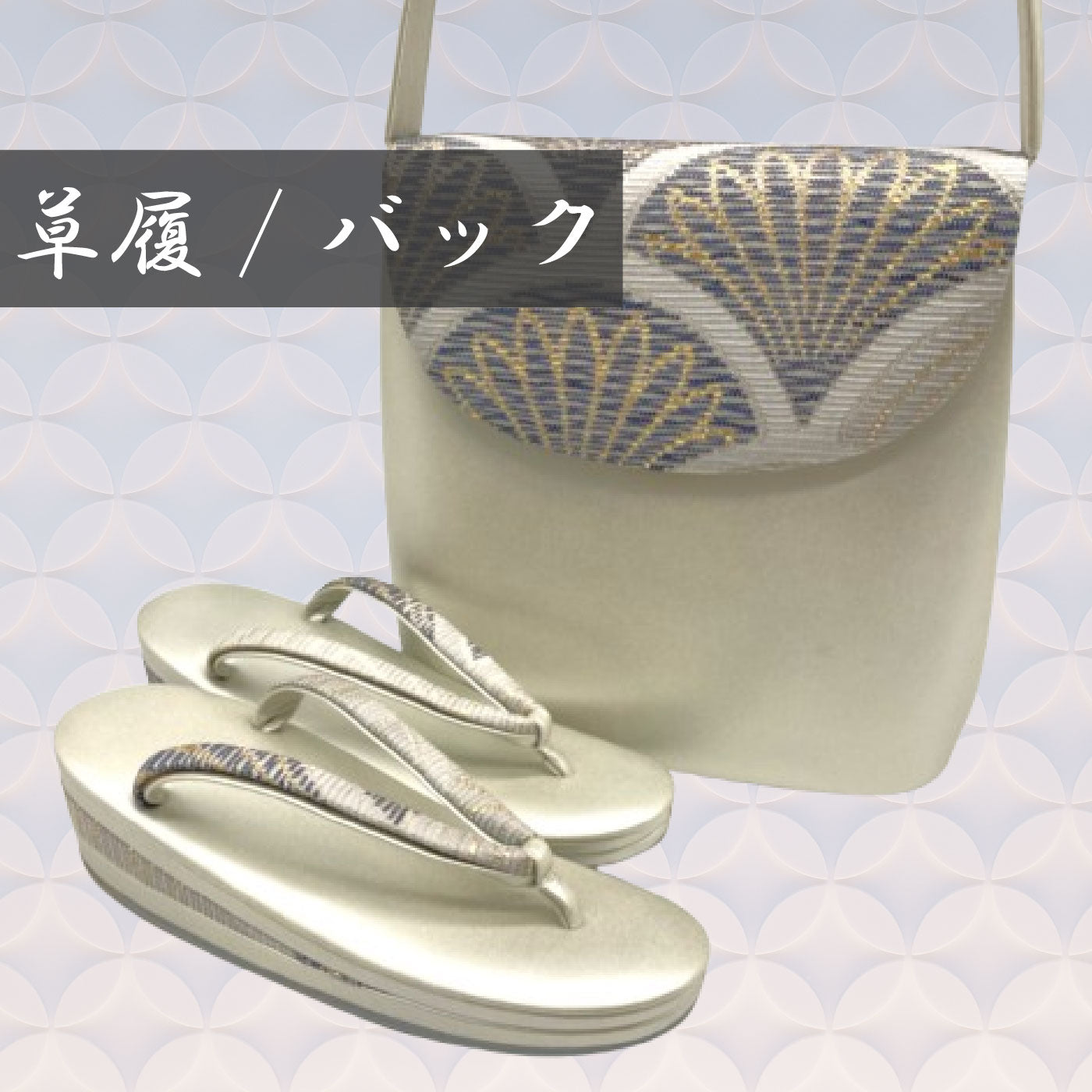 金系(金色(かないろ))(※定本 和の色辞典 参照)地に、和本柄や古典柄が織られています。お上品な雰囲気です。
